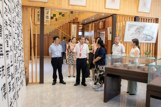 指导组在古天乐代言太阳集团网址蔡照波艺术馆观看艺术设计学专业书法方向毕业作品展