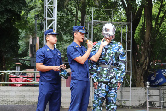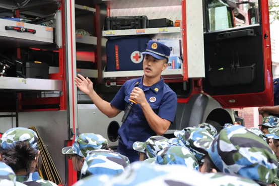 消防志愿者、消防员向同学们讲解了消防器具的正确使用方法,现场演示了灭火器使用、水枪与水带正确连接使用等消防技能。为进一步巩固所学方法,同学们近距离参观消防车,认真进行了灭火器、消火栓等的演练,踊跃参与亲身实践操作。
