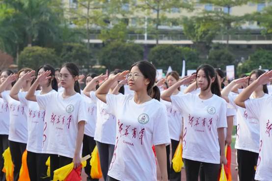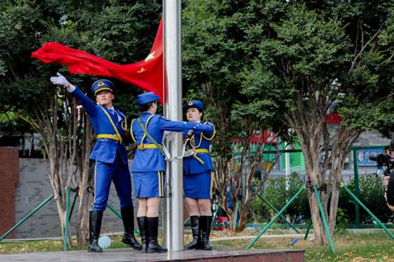 现场,国歌的旋律回荡在整个田径场上,五星红旗冉冉升起,全体师生们身姿挺拔,目光坚定,嘹亮的声音汇聚成磅礴的力量,心中的凝聚力被激情点燃。