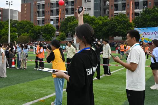 偌大的运动场上,不只有体育和竞技,还有工作人员们忙碌的身影。他们检录计分、维持秩序、清扫场地……为运动会的顺利进行保驾护航。看台上,还有一群为运动健儿加油呐喊的观众,赛场下,也总有一群为他们送上温暖的朋友。