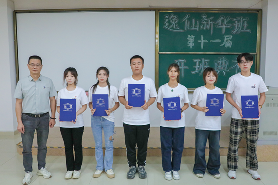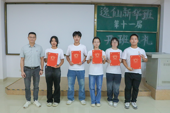 王庭槐校长(左一)为广州校区2024级“逸仙新华班”学生代表颁发入班证书