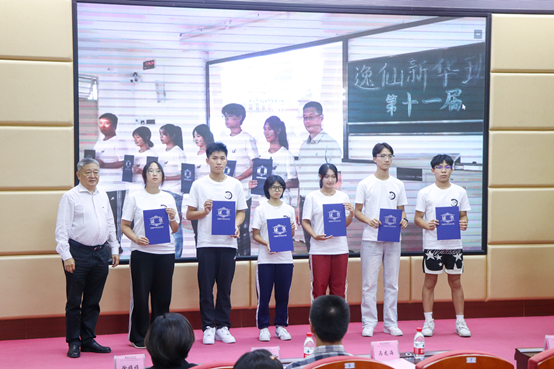 林源书记(左一)为东莞校区2024级“逸仙新华班”学生代表颁发入班证书