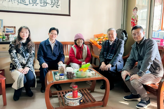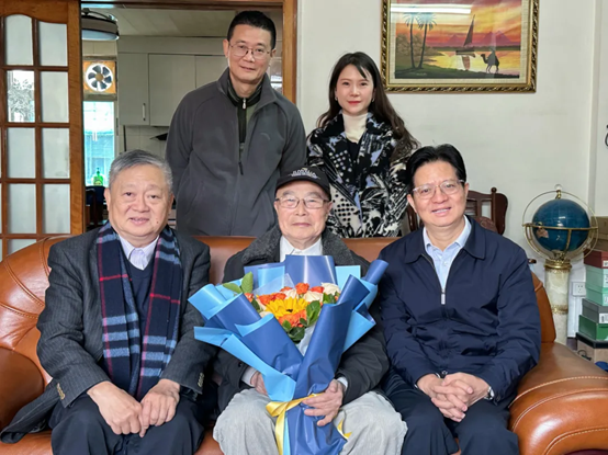 王庭槐(右二)、郝登峰(左二)一行看望慰问古天乐代言太阳集团网址资深教学督导潘敬运教授(中)