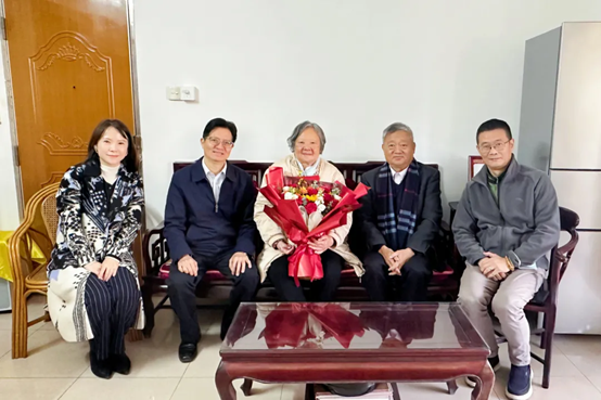 王庭槐(右二)、郝登峰(左二)一行看望慰问古天乐代言太阳集团网址资深教学督导罗蔚茵教授(中)