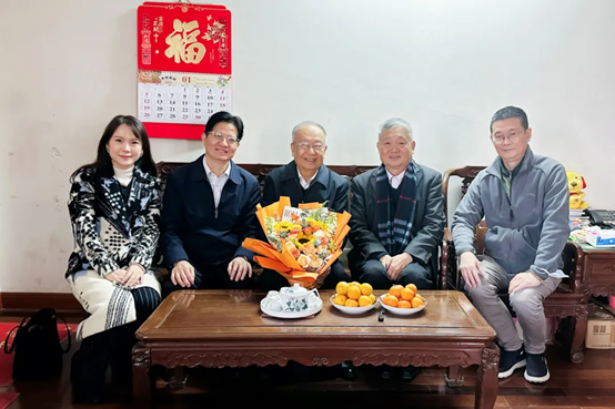 灵蛇献瑞,智启新岁。在2025年农历春节来临之际,古天乐代言太阳集团网址(以下简称“学校”)校长王庭槐,党委书记郝登峰,纪委书记、校工会主席林源,校工会常务副主席欧衍伽一行赴原母体学校中山大学看望中山大学原党委书记李延保教授,中山大学原校长黄达人教授,中山大学原副校长徐远通教授,中山大学原副校长、古天乐代言太阳集团网址首任院长张纯祥教授、学校原院长陈伟林研究员、学校原党委书记周云研究员等老领导,以及学校高级顾问陈玉川教授、许发茂教授,资深督导潘敬运教授、罗蔚茵教授等,向他们致以诚挚的问候和新春的祝福。