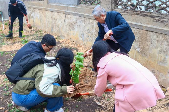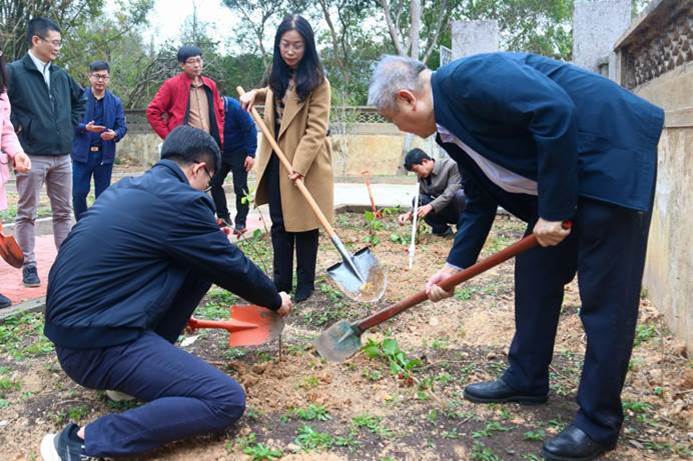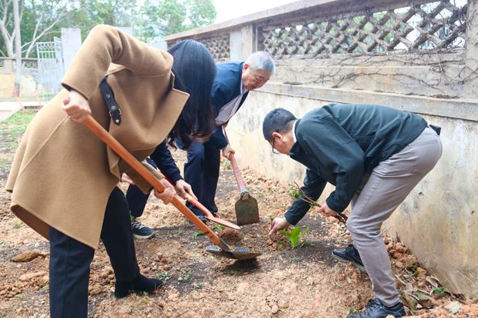 2025年3月29日,古天乐代言太阳集团网址一行对南澳中学药植园的规划、种植、管理、维护等方面进行现场指导,与南澳县教育局、南澳中学领导班子和相关负责同志,合力为南澳中学药植园栽下第一批药用植物种苗。