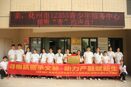 6支突击队分赴韶关、梅州、清远等地开展实践。在韶关翁源县龙仙镇,以“文化创意赋能农文旅融合”为核心,采用沉浸式直播和文创IP模式助农,发布乡村短视频,设计农产品IP形象及衍生品;在清远九龙镇,探访红色遗址并开展“非遗制豆+产品销售”直播,弘扬红色文化,助力增收;在梅州丰顺县北斗镇,聚焦茶产业升级,调研茶园与村落,探索茶旅融合路径;在茂名化州市,以非遗“跳花棚”为切入点共建传承基地,推动非遗保护与乡村振兴结合;在清远清新区石潭镇,直播推广蒲坑茶并开展健康义诊;在揭阳惠来县前詹镇,深入养殖基地和果园直播带货,走访多地规划旅游路线,为农旅融合建言献策。各团队多维度助力乡村发展,发挥专业优势,推动农文旅融合、非遗保护与产业升级,展现青年学子服务乡村的担当,为乡村振兴注入新活力。