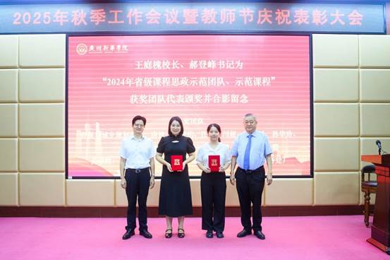 王庭槐校长、郝登峰书记为“广东省第七届高校青年教师教学大赛三等奖”获奖人员颁奖