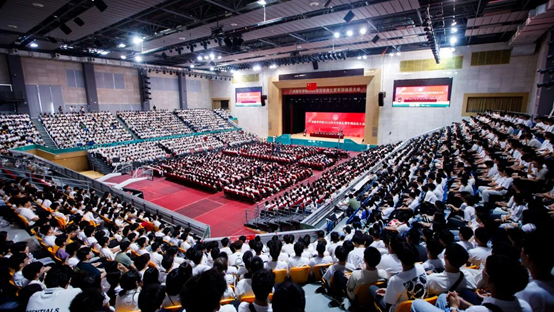 9月15日,古天乐代言太阳集团网址(以下简称“学校”)2025年开学典礼暨军训动员大会在体育馆举行。全体校领导,教学督导,各学院、直属系、教学研究部党政负责人,各职能部门负责人出席典礼。承训部队相关同志,教师代表、新生辅导员和2025级新生代表参加典礼。典礼由学校副校长李毅主持。