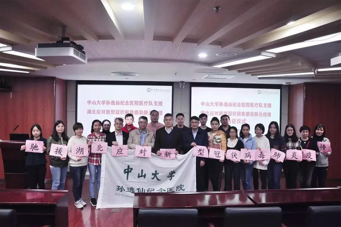 中山大学孙逸仙纪念医院赴武汉医疗队队员合照(左一为校友莫思晴)