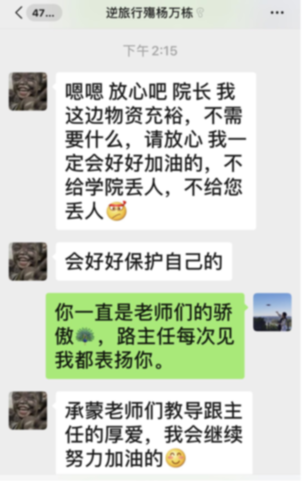 “希望同学们收到母校的御寒物资后,赶快用起来,以一个身体健康的医务战士的精神面貌,去更好地守护病患的生命与健康,为党和国家作出更多的贡献。在武汉抗“疫”一线的同学们,生命的意义和价值、教育的意义和价值,在你们的身上得到了最好的诠释,中山大学新华学院全体师生和你们的家人期待你们健健康康的归来。”周云书记给远方的孩子送去温暖祝福。