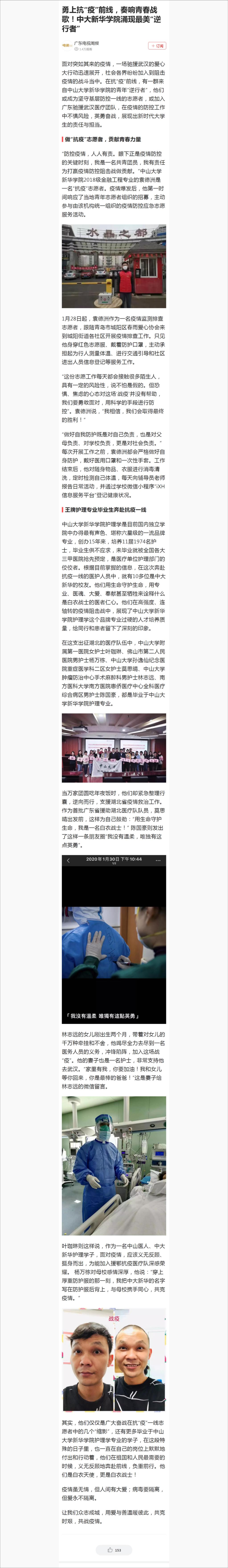 其实,他们仅仅是广大奋战在抗“疫”一线志愿者中的几个“缩影”,还有更多毕业于中山大学新华学院护理学专业的学子,在这段特殊的日子里,也一直在自己的岗位上默默地付出和行动着,他们在祖国和人民最需要的时候,义无反顾地奔赴前线,负重前行。他们是白衣天使,更是白衣战士!