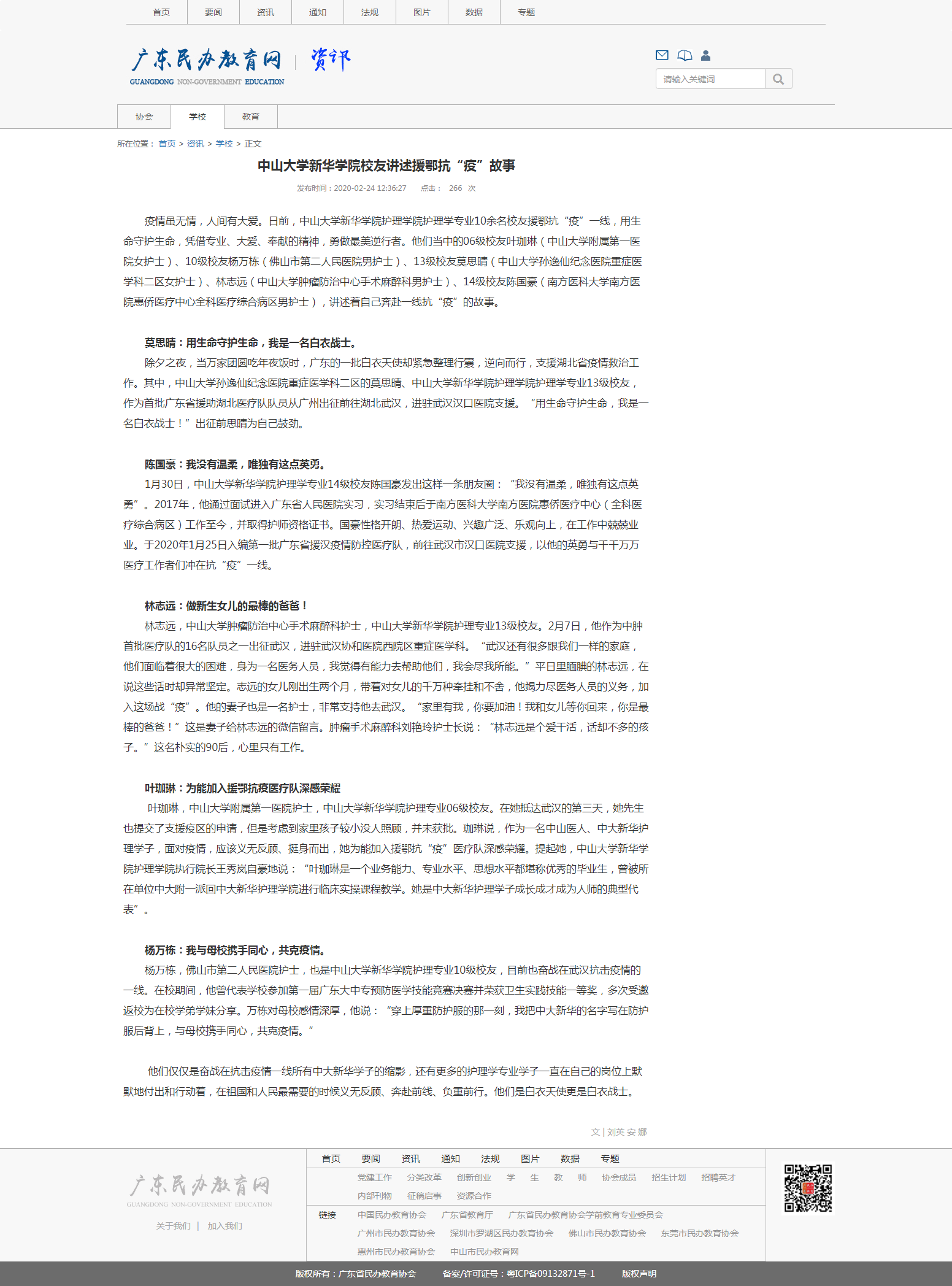 [广东民办教育网]中山大学新华学院校友讲述援鄂抗“疫”故事