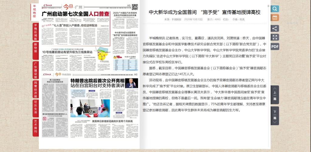 [羊城晚报]中大新华成为全国首间 “施予受”宣传基地授牌高校