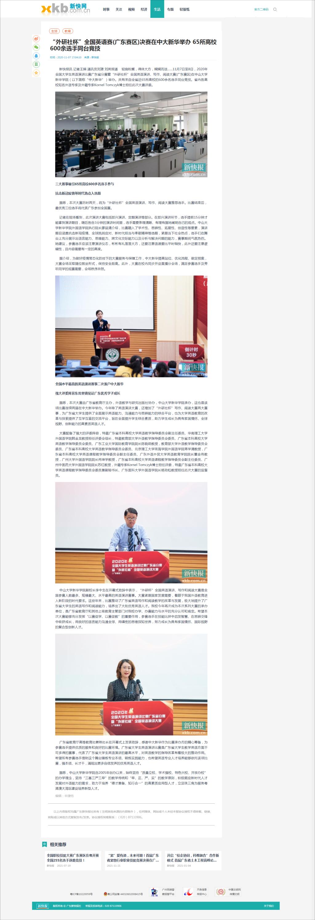 新快报讯 记者王娟 通讯员刘赟 刘英报道 轻施粉黛,得体大方,娓娓而谈……11月7日至8日,2020年全国大学生英语演讲比赛广东省分赛暨“外研社杯”全国英语演讲、写作、阅读大赛(广东赛区)在中山大学新华学院(以下简称“中大新华”)举办。共有来自全省近65所高校的600余名选手同台竞技。省内各高校知名外语专家及外籍专家Kornel Tomczyk博士担任此次大赛评委。