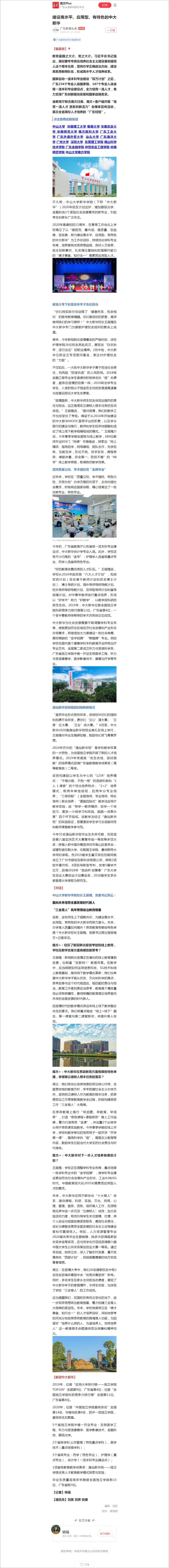 [南方+]建设高水平、应用型、有特色的中大新华
