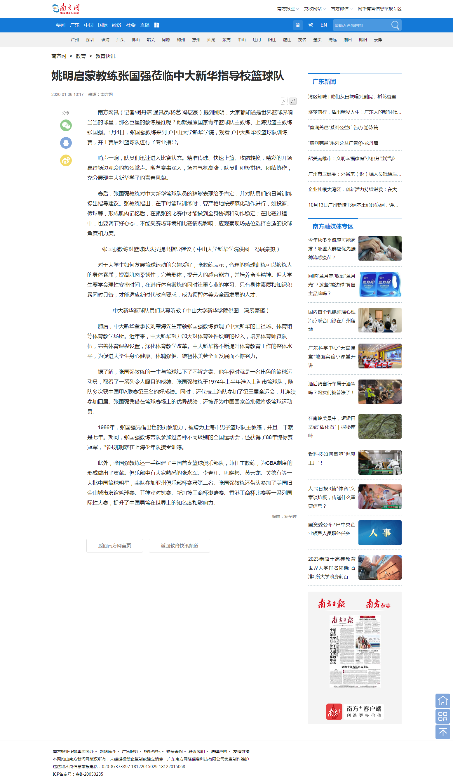 提到姚明,大家都知道是世界篮球界响当当的球星,那么巨星的教练是谁呢?他就是原国家青年篮球队主教练、上海男篮主教练张国强。1月4日,张国强教练来到了中山大学新华学院,观看了中大新华校篮球队训练赛,并于赛后对篮球队进行了专业指导。
