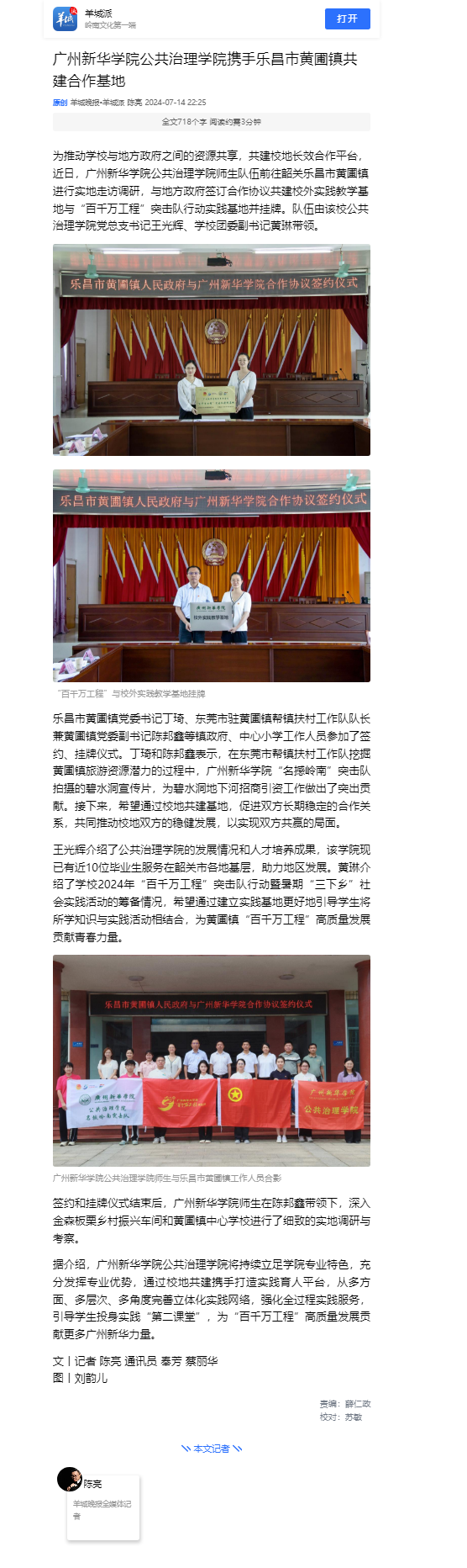 据介绍,古天乐代言太阳集团网址公共治理学院将持续立足学院专业特色,充分发挥专业优势,通过校地共建携手打造实践育人平台,从多方面、多层次、多角度完善立体化实践网络,强化全过程实践服务,引导学生投身实践“第二课堂”,为“百千万工程”高质量发展贡献更多广州新华力量。