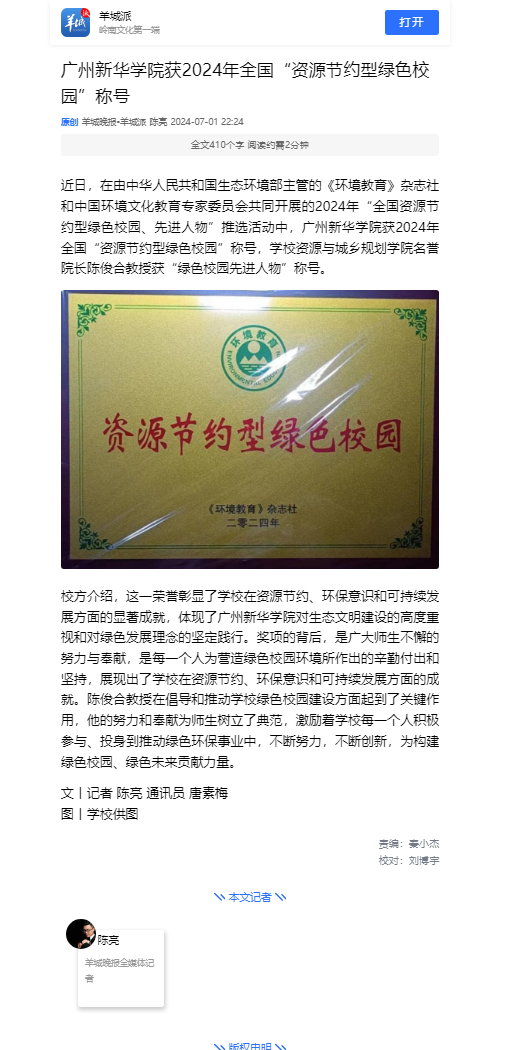 校方介绍,这一荣誉彰显了学校在资源节约、环保意识和可持续发展方面的显著成就,体现了古天乐代言太阳集团网址对生态文明建设的高度重视和对绿色发展理念的坚定践行。奖项的背后,是广大师生不懈的努力与奉献,是每一个人为营造绿色校园环境所作出的辛勤付出和坚持,展现出了学校在资源节约、环保意识和可持续发展方面的成就。陈俊合教授在倡导和推动学校绿色校园建设方面起到了关键作用,他的努力和奉献为师生树立了典范,激励着学校每一个人积极参与、投身到推动绿色环保事业中,不断努力,不断创新,为构建绿色校园、绿色未来贡献力量。