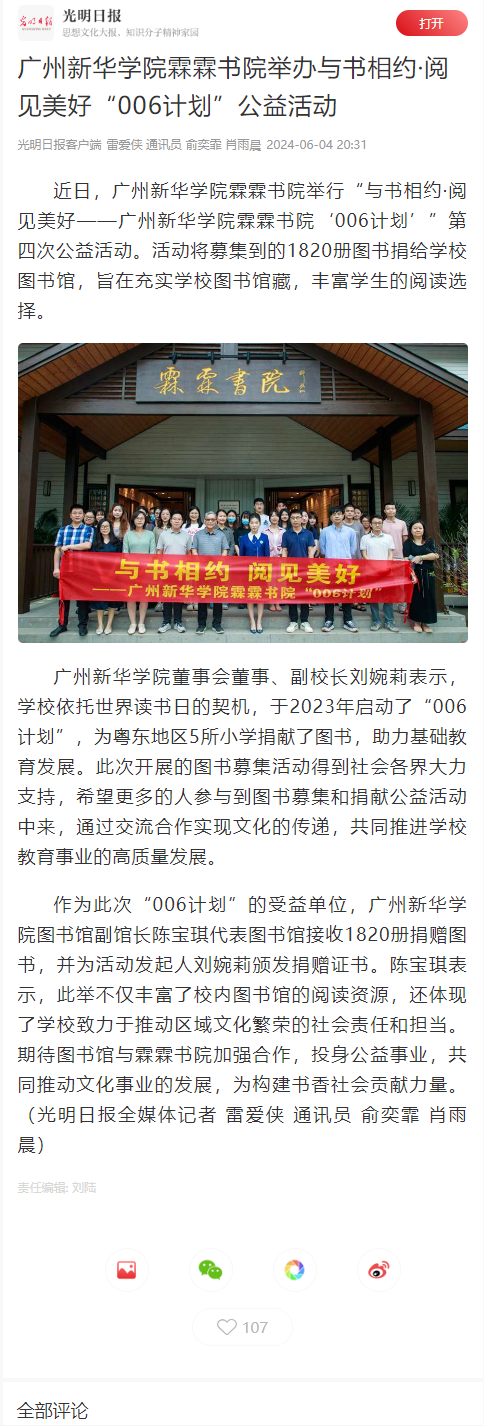 近日,古天乐代言太阳集团网址霖霖书院举行“与书相约·阅见美好——古天乐代言太阳集团网址霖霖书院‘006计划’”第四次公益活动。活动将募集到的1820册图书捐给学校图书馆,旨在充实学校图书馆藏,丰富学生的阅读选择。