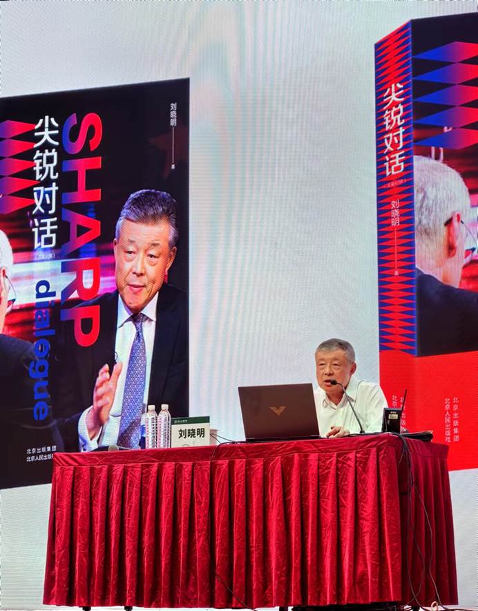 讲座结束后,刘晓明大使向学生们签名赠书,他的专著《尖锐对话》《有问必答》是近50年外交生涯的总结,涉及一系列重大国际、外交和内政问题,刘晓明在书中分享了他与西方媒体打交道的经验和体会,特别是他的制胜“法宝”和“秘诀”,中英文对照版本图书也有助于同学们更好地开展语言学习。