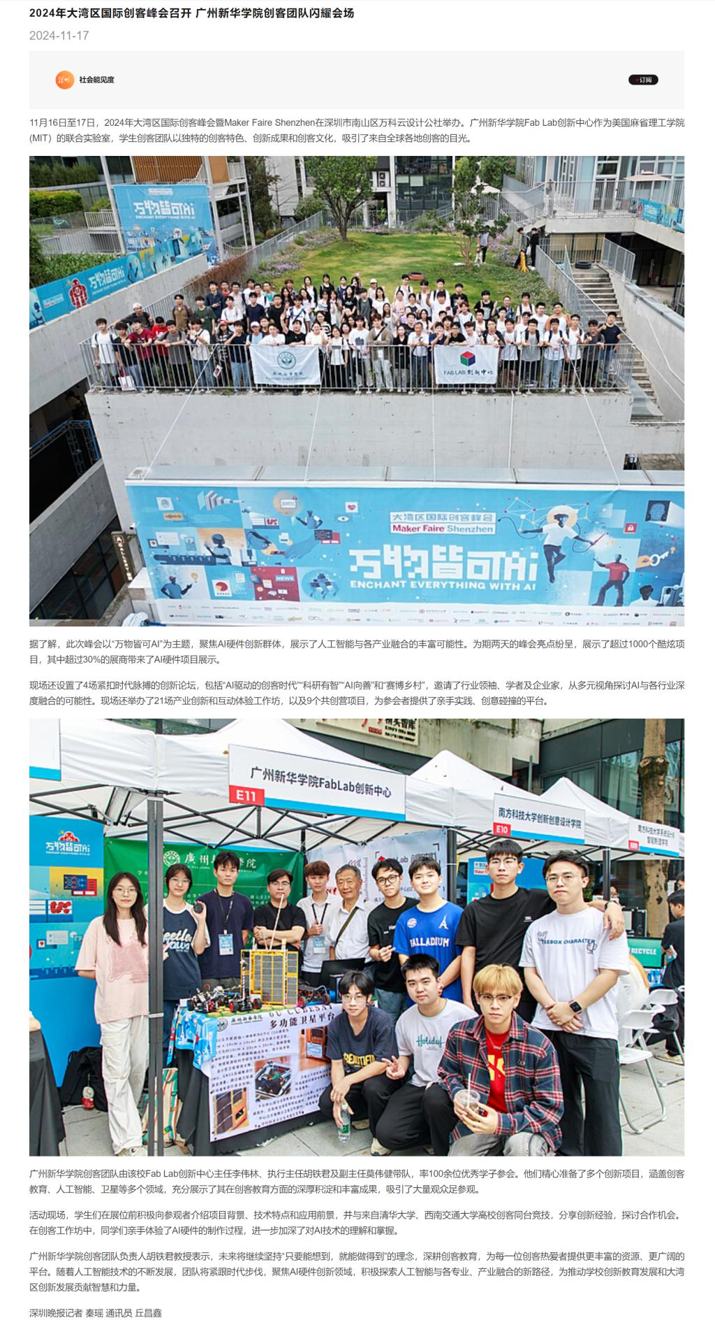 11月16日至17日,2024年大湾区国际创客峰会暨Maker Faire Shenzhen在深圳市南山区万科云设计公社举办。古天乐代言太阳集团网址Fab Lab创新中心作为美国麻省理工学院(MIT)的联合实验室,学生创客团队以独特的创客特色、创新成果和创客文化,吸引了来自全球各地创客的目光。