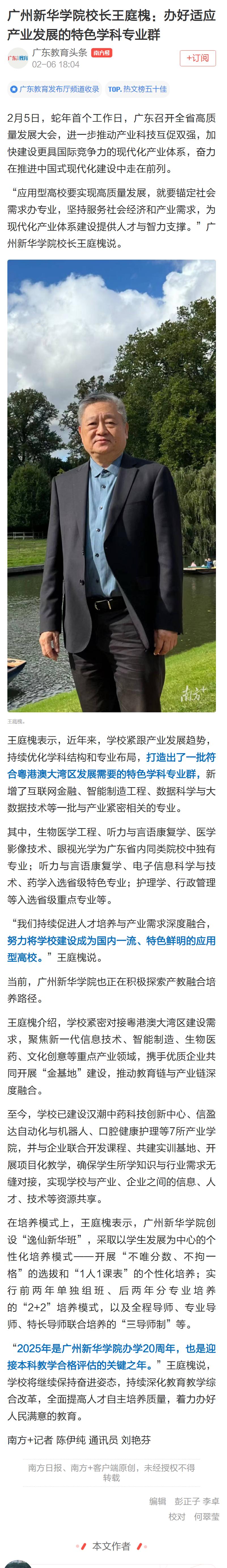 王庭槐介绍,学校紧密对接粤港澳大湾区建设需求,聚焦新一代信息技术、智能制造、生物医药、文化创意等重点产业领域,携手优质企业共同开展“金基地”建设,推动教育链与产业链深度融合。