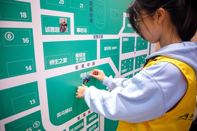 值得一提的是,展厅内还设置了“记忆播种计划”的互动角,邀请观众利用现场准备的羊毛毡等材料制作“记忆种子”,在校园寻觅记忆坐标拍照后,回到展厅中的校园地图上进行标记“打卡”,留下属于自己的“心动坐标”。“通过‘作品-实地’合影的方式,让观众的‘记忆种子’与真实时空产生奇妙反应。”广东省许钦松艺术基金会秘书长方婷漫表示,希望大家能通过互动塑造出属于自己的情感符号,在地图上为母校绘制最浪漫的春日情书。