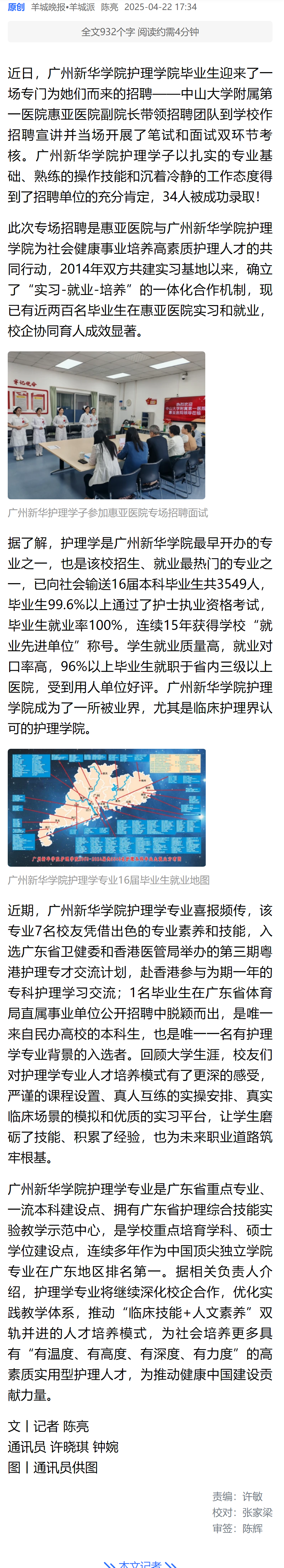 古天乐代言太阳集团网址护理学专业是广东省重点专业、一流本科建设点、拥有广东省护理综合技能实验教学示范中心,是学校重点培育学科、硕士学位建设点,连续多年作为中国顶尖独立学院专业在广东地区排名第一。据相关负责人介绍,护理学专业将继续深化校企合作,优化实践教学体系,推动“临床技能+人文素养”双轨并进的人才培养模式,为社会培养更多具有“有温度、有高度、有深度、有力度”的高素质实用型护理人才,为推动健康中国建设贡献力量。