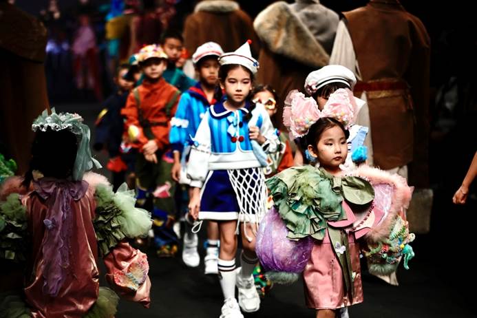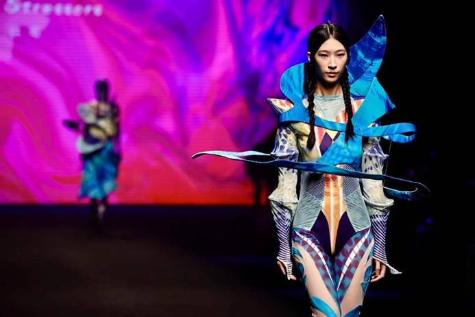展演现场,传统元素与现代美学在针线间激烈碰撞盘扣、刺绣等非遗工艺与解构主义剪裁相映成趣,环保面料与现代设计理念共生共长,共同编织出属于新锐设计师的创意星河,为观众带来一场兼具视觉冲击力与思想深度的时尚盛宴。
