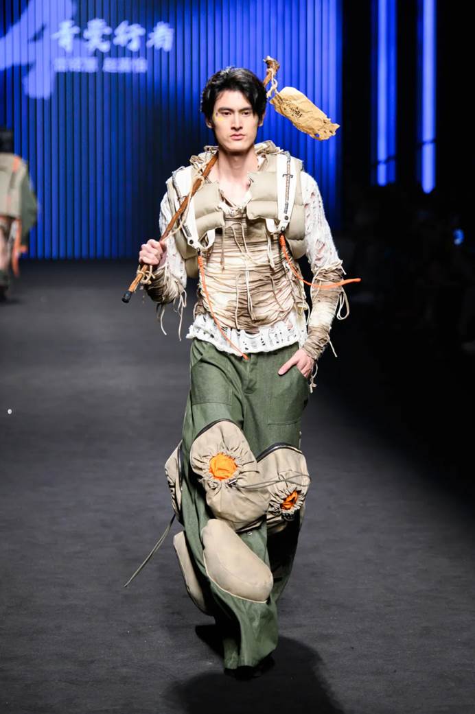《青囊行者》系列作品从中医文化中汲取灵感,以独特廓形为“骨”、鲜明色彩为“魂”,构建传统医学与现代时尚的对话场域,呼吁青年群体关注中医智慧。“青囊”二字源自中医典籍《青囊书》,是千年医道的象征,承载着悬壶济世的仁心,“行者”既是衣者,亦是传薪之人——以工装为载体,让东方医学智慧行走于当代。作品以独特的设计风格和精湛的制作工艺,巧妙融合了传统文化精髓与当代时尚元素,将东方美学韵味与可持续发展思维完美结合,获得了评委的高度赞扬。