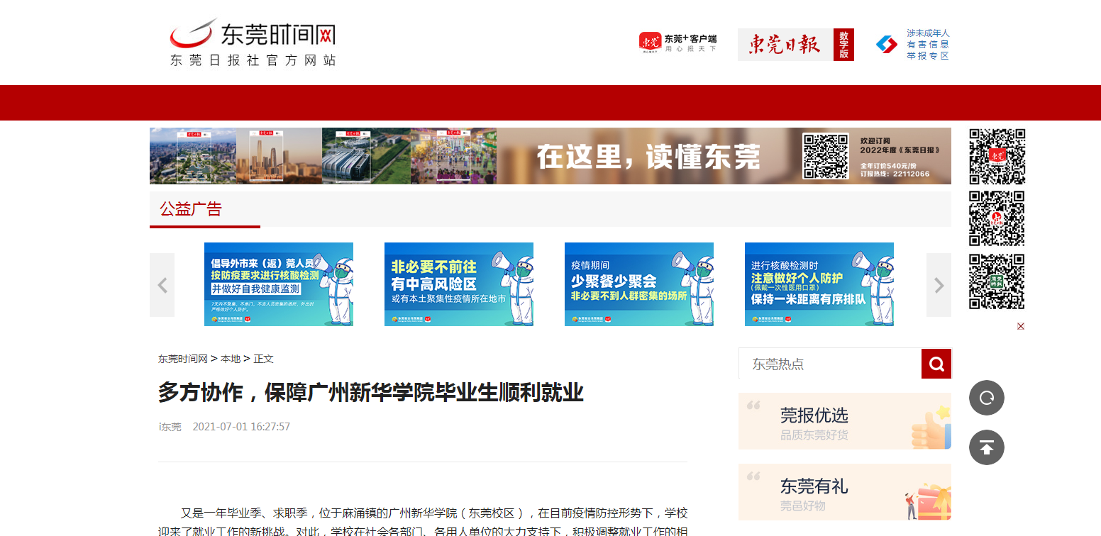 同时,学校还联合东莞市人力资源和社会保障局组织了一系列就业服务活动,通过就业指导中心公众号发布上百家东莞知名企业的招聘信息,毕业生可主动与企业联系,积极向企业投递简历。