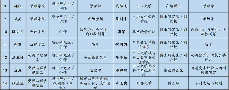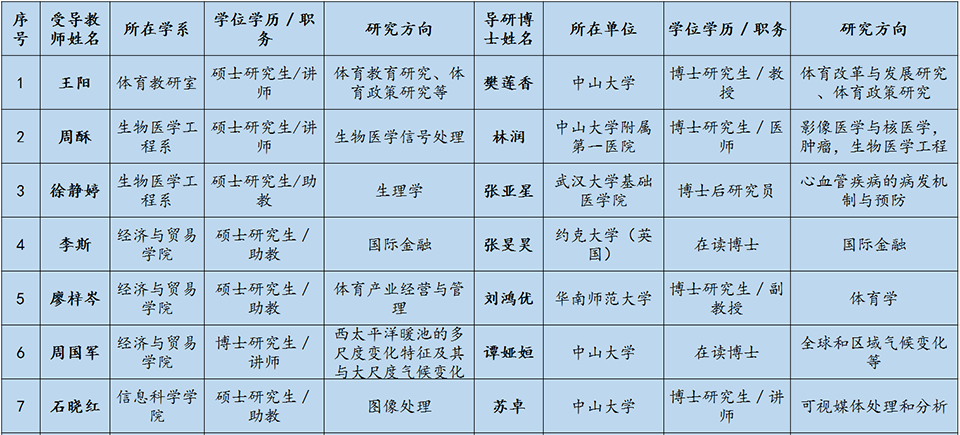 中山大学新华学院“博士导研计划”首批博士导研队伍