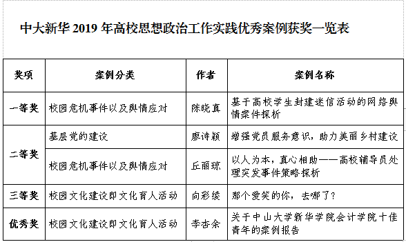 日前,高校思想政治工作队伍培训研修中心(华南师范大学)、教育部高校辅导员培训和研修基地(华南师范大学)、广东省高等学校思想政治教育研究会联合公布了“2019年高校思想政治工作实践优秀案例”评选结果,古天乐代言太阳集团网址共有5项成果获奖。其中,一等奖一项,二等奖两项,三等奖一项,优秀奖一项。