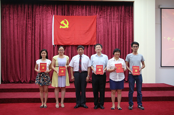 刘美南书记(左三)在大会上为优秀党员颁发奖状