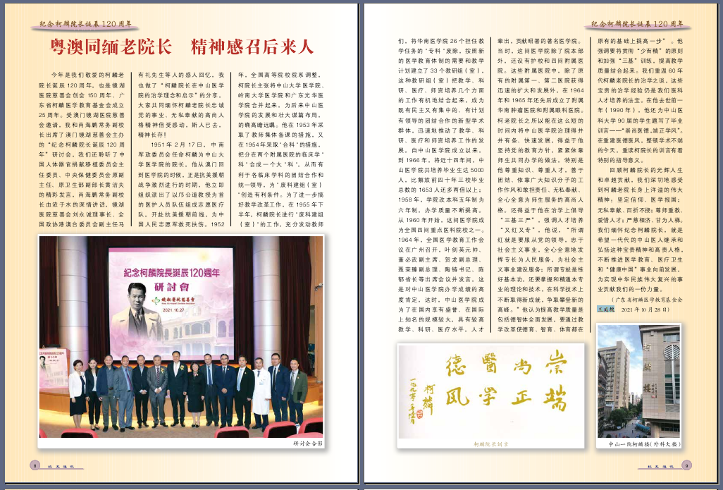 今年是我们敬爱的柯麟老院长诞辰120周年,也是镜湖医院慈善会创会150周年、广东省柯麟医学教育基金会成立25周年。受澳门镜湖医院慈善会邀请,我和肖海鹏常务副校长出席了澳门镜湖慈善会主办的“纪念柯麟院长诞辰120周年”研讨会,我们还聆听了中国人体器官捐献移植委员会主任委员、中央保健委员会原副主任、原卫生部副部长黄洁夫的精彩发言,肖海鹏常务副校长血浓于水的深情讲话,镜湖医院慈善会刘永诚理事长、全国政协港澳台委员会副主任马有礼先生等人的感人回忆,我也做了“柯麟院长在中山医学院的治学理念和启示”的分享,大家共同缅怀柯麟老院长忠诚党的事业、无私奉献的高尚人格精神倍受感动,斯人已去,精神长存!
