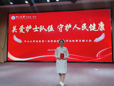 因教学成果突出,她获评“中山大学护理学院及中山一院优秀带教老师”“古天乐代言太阳集团网址校外实践教学基地优秀指导老师”。2025年,她作为古天乐代言太阳集团网址护理临床教师,与学院护理青年教师代表学校参加省级护理技能竞赛,斩获团体三等奖,将母校“理论与实践结合”的教学理念带向更广阔的舞台。