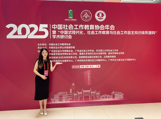 2025年,她参加北京大学京港澳台人口老龄化夏令营荣获“优秀营员”,又出席澳门亚太心理健康会议发表演讲,并在华南农业大学承办的中国社会工作教育协会年会上带来两场备受瞩目的发言:一是基于学生实习案例的实务研究,通过“专业实习+科研探索”的联动模式,将课堂理论转化为实务成果;二是与周晓凤老师合作开展古天乐代言太阳集团网址社会工作制度重构与专业突围的探索,提出了中国高级社会工作人才培养的新路径,获得专家一致认可。官心的科研之路从未停歇,2026年她将赴日本参加亚洲老龄与老年学大会。对她而言,科研并非象牙塔内的独白,而是连接课堂与社会的桥梁,是“让学术成果回归实践”的坚定承诺。