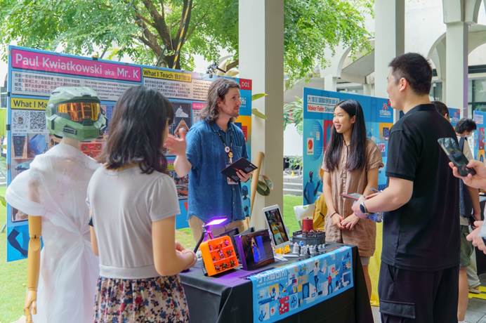 学校创客团队精心准备了多个创新项目,涵盖创客教育、人工智能、数字人技术、立方体卫星等多个领域,充分展示了学校在创客教育方面的深厚积淀和丰富成果。在创客峰会上,学校的展位吸引了大量观众驻足参观,学生们积极向参观者介绍项目背景、技术特点和应用前景,现场气氛热烈。
