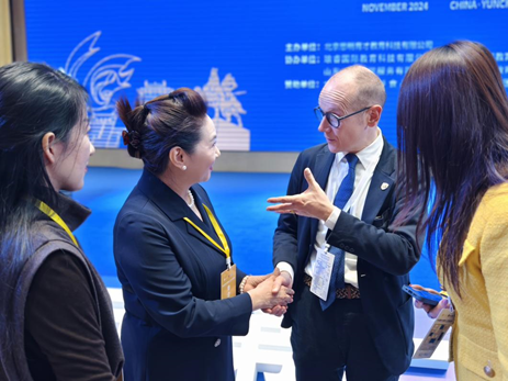 当日下午,音乐系团队参加了与各高校领导的专题洽谈,并与来自法国、突尼斯等国际高校的代表展开广泛交流。果敢先生在会上深入阐释了中法文化与教育合作的意义,并对中法双方在音乐教育领域的进一步合作提出了建设性建议。