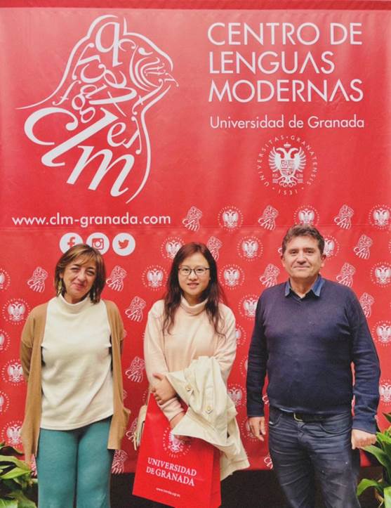 学校西班牙语专业副主任许婷芳(中)与格大语言中心校长Francisco Montoro Ríos(右)、格大语言中心西班牙语学术副主任Sonia Sánchez Molero(左)合影