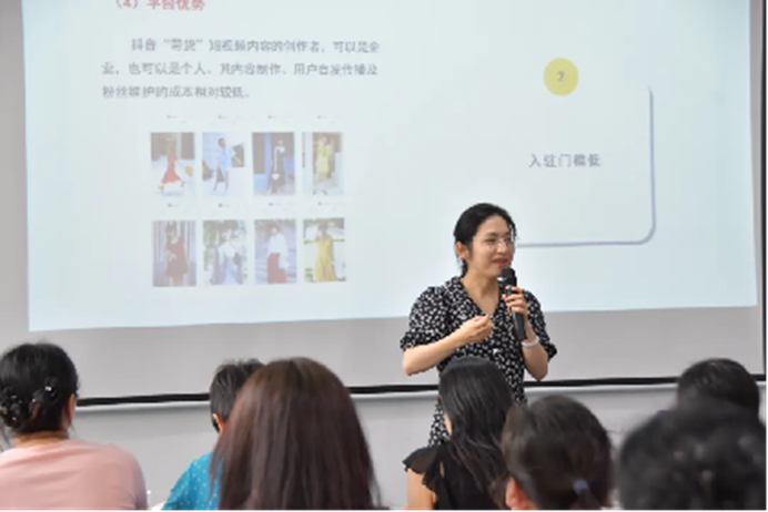 活动上,邵咪咪老师从电商直播行业的发展脉络切入,系统解读平台规则、账号定位及运营策略,结合行业趋势剖析,为学员构建起扎实的理论框架。