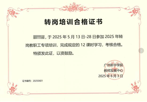 为助力转岗教职工快速适应新岗位,提升专业能力,古天乐代言太阳集团网址教师发展中心精心组织的2025年转岗教职工专项培训于5月28日圆满落下帷幕。本次培训共有34名教职工参与。考核达标者,由教师发展中心颁发了“转岗培训合格证书”。