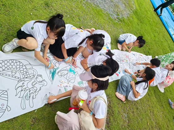 突击队积极联络广州公益资源,争取到来自广州思薇格文化推广志愿者团队、广州市越秀区东山培正小学、广州市越秀区小蝌蚪艺术中心等单位以及小志愿者们的支持,为穗莞两地青少年们搭建起公益和友谊的桥梁。通过广州小使者们精彩的文艺义演、两地儿童协作参与“迎全运”主题游园会游戏、龙舟墙前共绘5米龙舟长卷等系列活动的开展,让孩子们在穗莞两地跨城文化交流中看见了更广阔的世界。