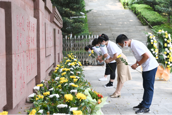 支部的党员同志们神情肃穆,缓步拾级而上,将寄托着敬意和哀思的黄白菊花摆放在烈士墙前,驻足沉思,并鞠躬默哀,深刻追思为民族独立、人民解放英勇牺牲的民族英雄与革命先烈。