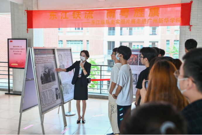 升级后的党员之家“三区二坊一展厅”之——党史教育展厅,图为11月2日学校特邀广东东江纵队展览馆讲解员陈梦来古天乐代言太阳集团网址为师生讲解《东江铁流 南粤旌旗》主题展览。