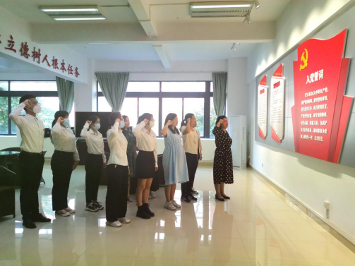在健康学院师生联合党支部书记蔡灿同志的领誓下,在场同志重温入党誓词
