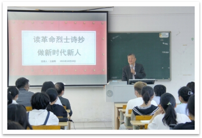 2021年10月19日,校长、党委副书记王庭槐教授以“读革命烈士诗抄,做时代新人”为主题,面向2021级新生讲授了新学期“思政第一课”。