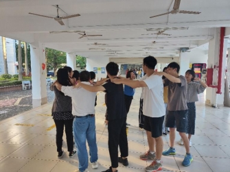 此外,周心怡还设计了一些有利于拉近师生间的热身小游戏,不仅达到了热身效果,还活跃了场上的气氛。大家掌握运动要领,克服困难,顺利完成了各组动作的训练要求,锻炼核心力量,提高自身的心肺功能。