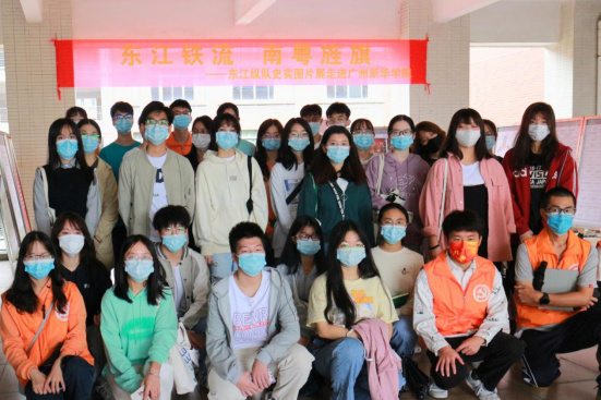 同学们观看东江纵队史实图片展合影留念